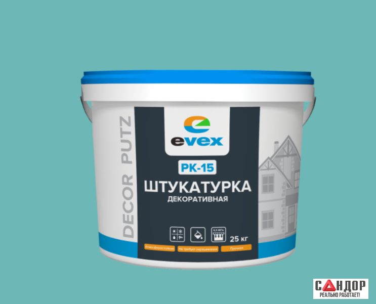 Evex PK-15 base B — это пастообразная штукатурка на основе акриловых сополимеров и мраморной крошки фракцией 1.5 мм. Литера "B" в названии указывает на модифицированный состав, который может отличаться от базовых версий (Base A или C)