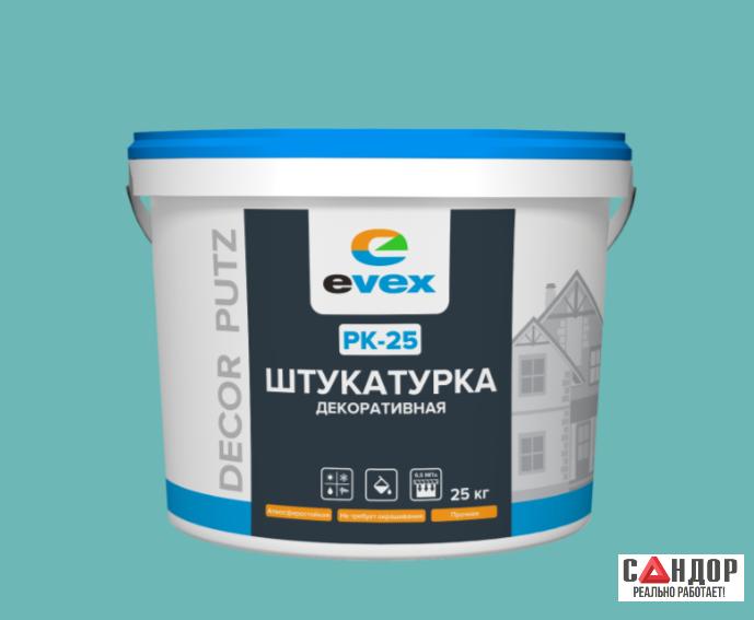 Evex PK-25 base C — это готовая к применению пастообразная штукатурка на основе акриловых сополимеров и мраморной крошки фракцией 2.5 мм. Буква "C" в маркировке, как и в случае с PK-15, указывает на специфическую рецептуру, часто связанную с оптимизацией под определенные условия нанесения или эксплуатации (например, повышенная пластичность, устойчивость к образованию высолов или улучшенная адгезия). Ключевая особенность — крупная фракция наполнителя, создающая ярко выраженную фактуру "камешек" или "короед".