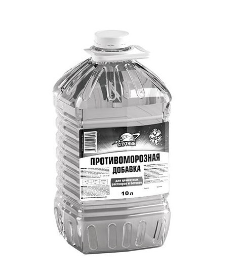 Противоморозная добавка «Спутник» — это водный раствор формиата натрия, который применяется для приготовления и укладки бетона (монолитные бетонные и железобетонные конструкции, замоноличивание стыков сборных конструкций) и растворов в зимних условиях при отрицательных температурах до -15 °С. 12