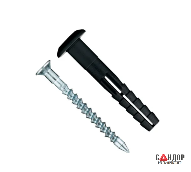 Дюбель с шурупом 6х40мм с воротником под молоток — это классический, быстрый и дешевый крепеж для массовых строительно-отделочных работ по бетону и кирпичу.
