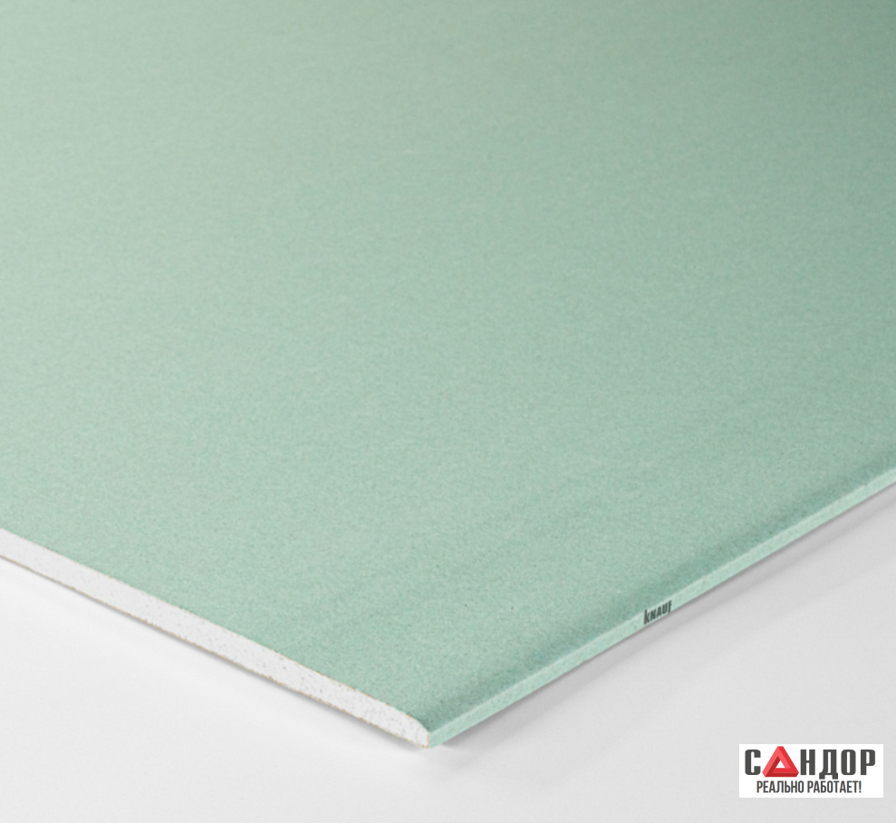КНАУФ-лист влагостойкий (ГСП-Н2) содержит силикон в сердечнике, снижающий водопоглощение.