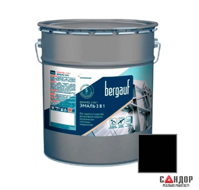 Грунт-эмаль для защиты от коррозии, декоративной покраски металлических и бетонных поверхностей, ГОСТ 51693-2000Алкидно-уретановая грунт-эмаль 3 В 1 «Bergauf» предназначена для окрашивания металлических конструкций, подвергшихся коррозии.