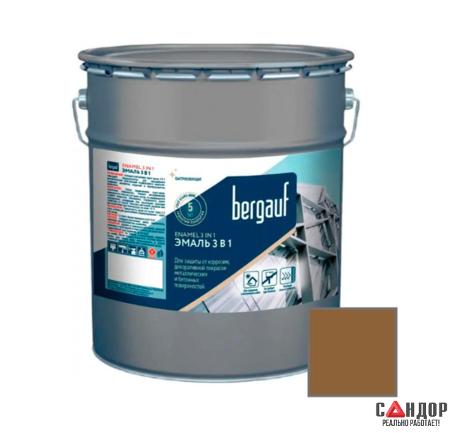 Грунт-эмаль 3в1 Bergauf ENAMEL алкидно-уретановая коричневая 5 кг