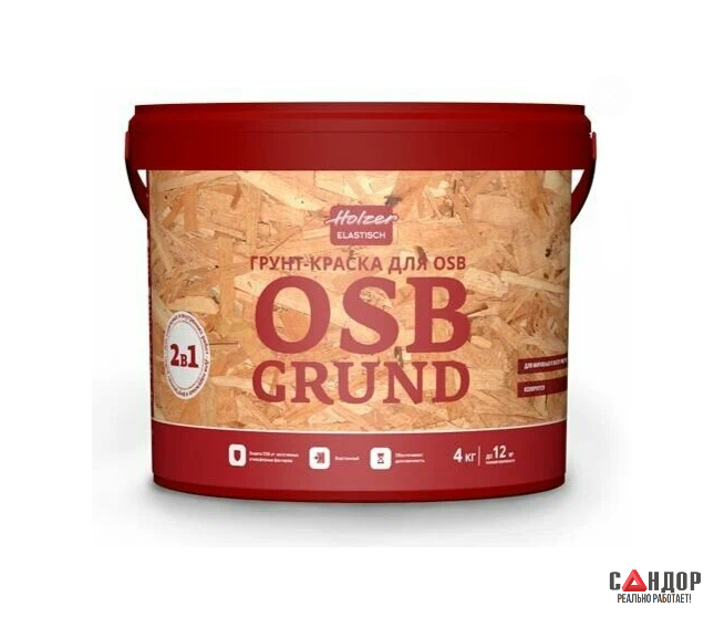 Грунт-краска Holzer OSB Grund — это специализированное средство для обработки поверхности плит OSB с целью их дополнительной защиты от проникновения влаги и атмосферных воздействий.