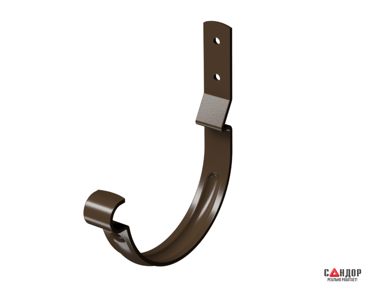Карнизный крюк короткий — это компактный и надежный элемент крепежной системы, предназначенный для монтажа водосточного желоба диаметром 125 мм на лобовую доску. Изделие выполнено в насыщенном цвете "Каштан" и относится к премиальной серии Docke Stal Premium.