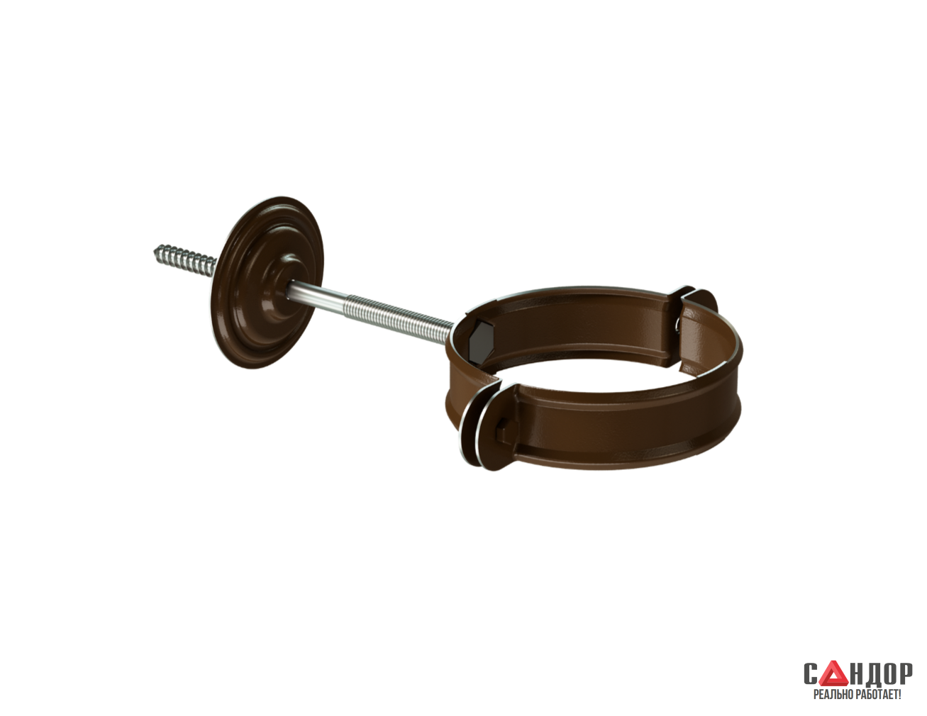 Хомут для водосточной трубы DOCKE Stal Premium — специализированный крепежный элемент, предназначенный для надежной фиксации вертикальных водосточных труб к фасаду здания. Модель «Каштан» (RR 33) выполнена в насыщенном коричневом цвете с теплым подтоном и предназначена для труб диаметром 90 мм. Обеспечивает прочное крепление с сохранением эстетического единства системы.