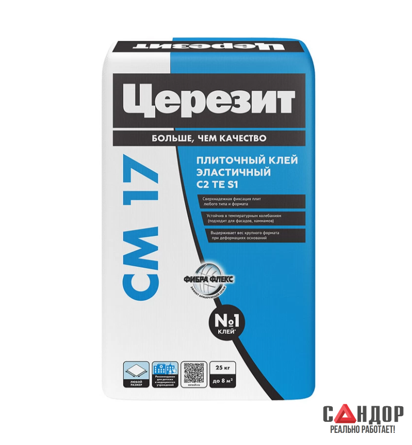 Клей для плитки высокоэластичный Церезит CM 17 Super Flex предназначен для крепления всех типов минеральных плиток — керамических, клинкерных, каменных, исключая мраморные.