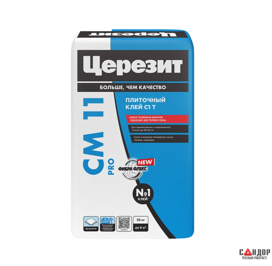 Ceresit CM 11 PRO — это высококачественный, усиленный, цементный плиточный клей серого цвета класса C1 T, предназначенный для профессионального применения. Его ключевые особенности — повышенная адгезия, эластичность, устойчивость к сползанию и длительное жизнеспособное время раствора.