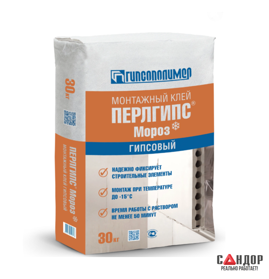 Монтажный гипсовый клей «Перлгипс Мороз» предназначен для монтажа перегородок из гипсовых пазогребневых плит при температуре окружающей среды до -15 °С.