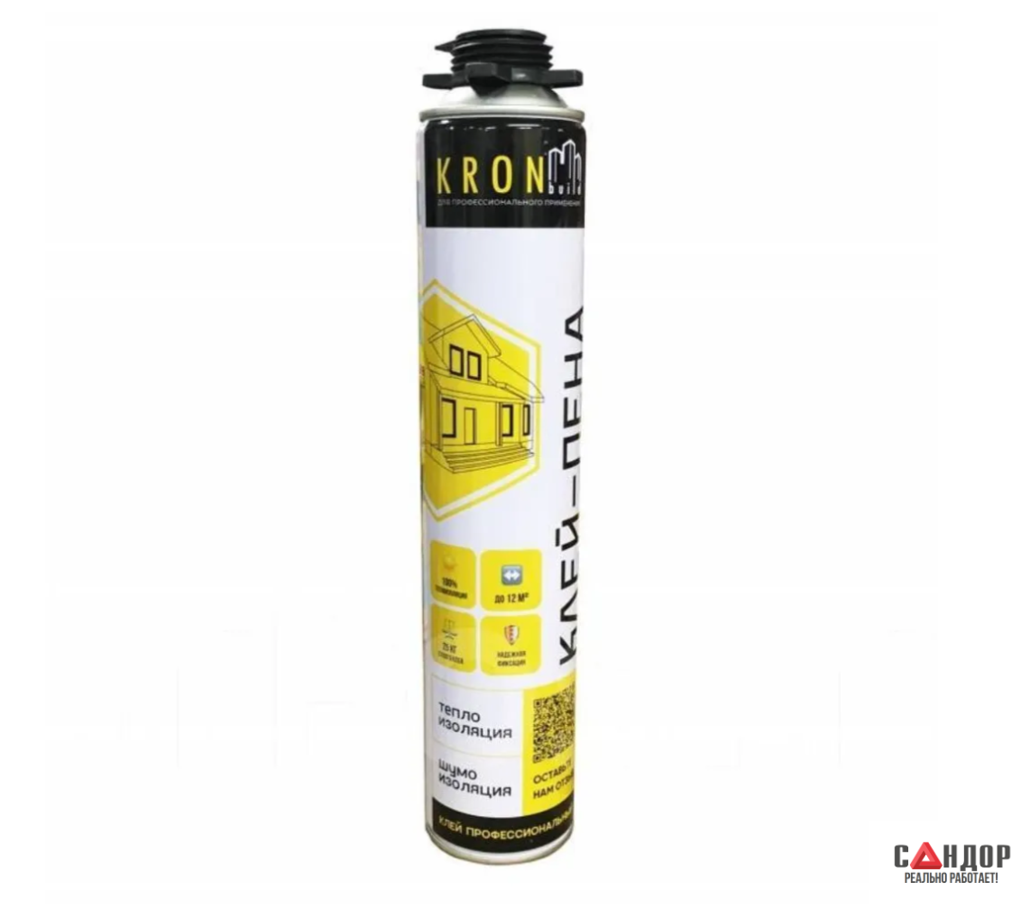 Клей-пена монтажная KRONbuild - это однокомпонентный полиуретановый клей в форме аэрозольной пены в баллоне. Предназначен для профессионального монтажа строительных материалов, где требуется высокая первичная и окончательная прочность сцепления, а также заполнение зазоров.