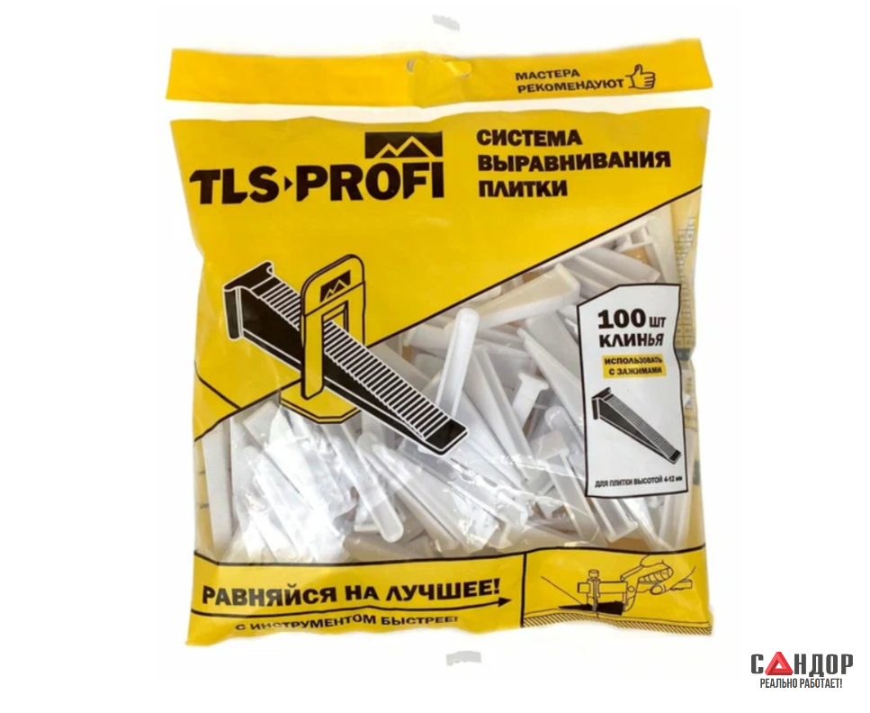 Клин TLS-Profi — это «силовой агрегат» системы выравнивания плитки, преобразующий простую установку зажимов в мощное выравнивающее усилие. Без него зажимы бесполезны.