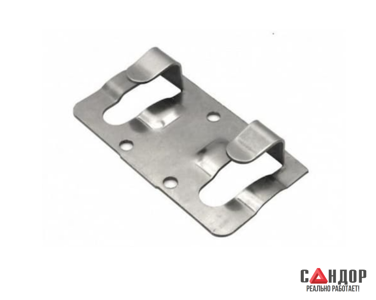 Стартовый кляммер с усом — специализированный крепежный элемент из нержавеющей стали для монтажа нижнего ряда плит в навесных вентилируемых фасадах (НВФ). Конструктивно аналогичен рядовому кляммеру, но имеет увеличенную длину монтажной платформы для надежного закрепления в стартовой зоне фасадной системы.