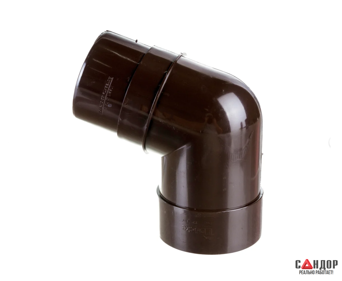Колено 72° — фасонный элемент водосточной системы премиум-класса, предназначенный для изменения направления вертикального водостока под углом 72 градуса. Изделие выполнено в цвете "Шоколад" и предназначено для труб диаметром 90 мм.