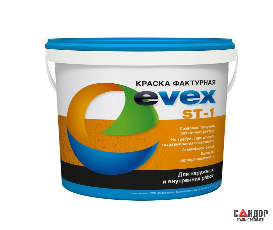 Evex ST-1 — это готовое к применению фактурное покрытие на основе акриловых сополимеров, предназначенное для создания прочных, долговечных и декоративных покрытий на различных минеральных поверхностях. Благодаря своей густой пастообразной консистенции и наполнителям, оно позволяет создавать разнообразные рельефные узоры и текстуры.