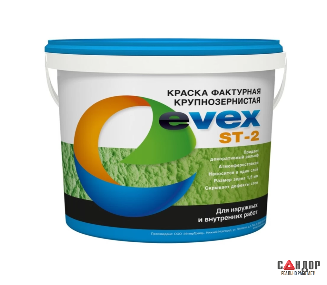 Evex ST-2 — это акриловая фактурная краска (штукатурка) с крупным зерном, предназначенная для создания грубых, выразительных и высокопрочных рельефных покрытий. Материал позиционируется как более устойчивый к воздействиям по сравнению с ST-1, что делает его идеальным выбором для мест с повышенной нагрузкой и для создания экстерьерных и интерьерных акцентов.