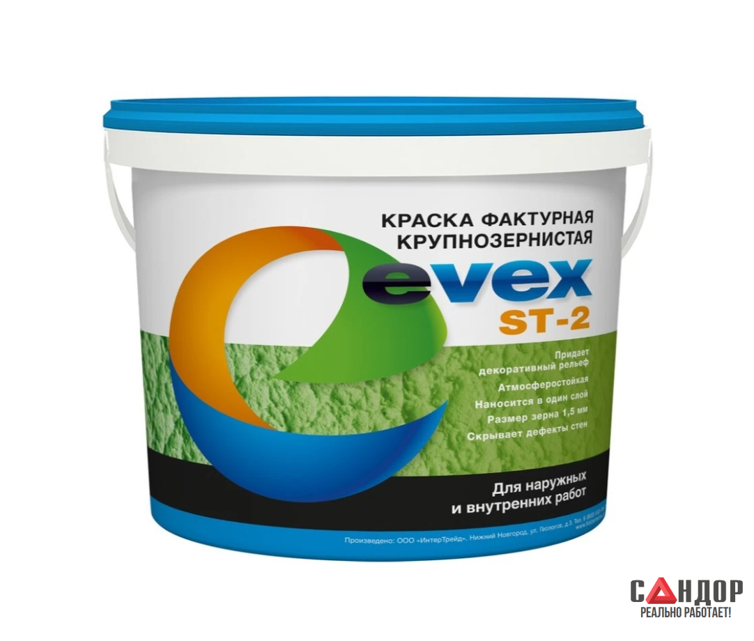Evex ST-2 base C — это профессиональная акриловая фактурная краска (штукатурка) с крупным зерном, предназначенная для создания сверхвыразительных, рельефных и экстремально прочных покрытий. Комбинация крупной фракции наполнителя (ST-2) и базы "C" делает этот материал специализированным решением для получения насыщенных и темных цветов в фактурных покрытиях.