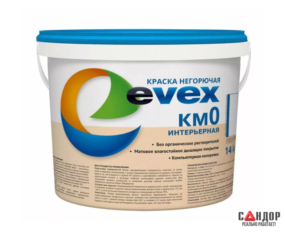 Краска Evex KM0 base A — это негорючий состав на основе калиевого жидкого стела. Используется для декоративного окрашивания стен и потолков в местах большого скопления людей (кинотеатры, спортивные, развлекательные и торговые центры), указательных элементов на путях эвакуации.