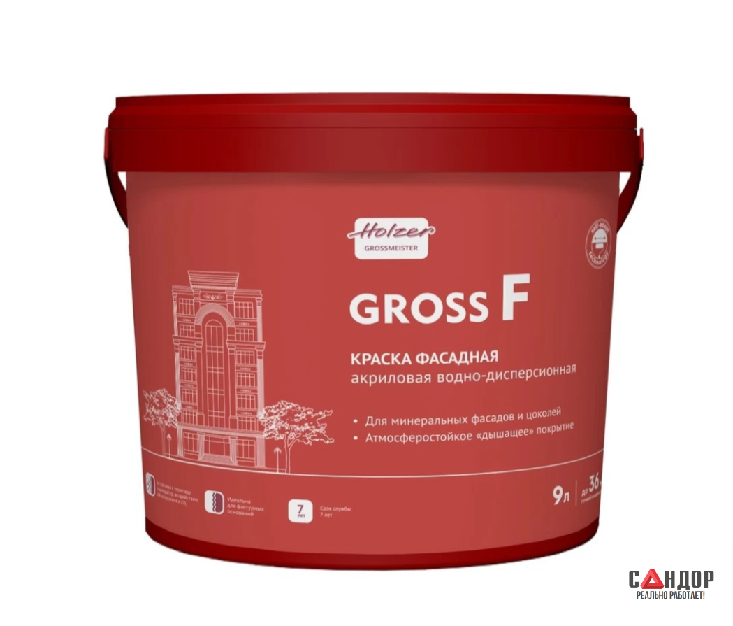 Оптимизация для профессионального использования: Как и вся линейка "Gross", краска поставляется в крупной таре 19,35 л, что экономически выгодно при работе с большими площадями.