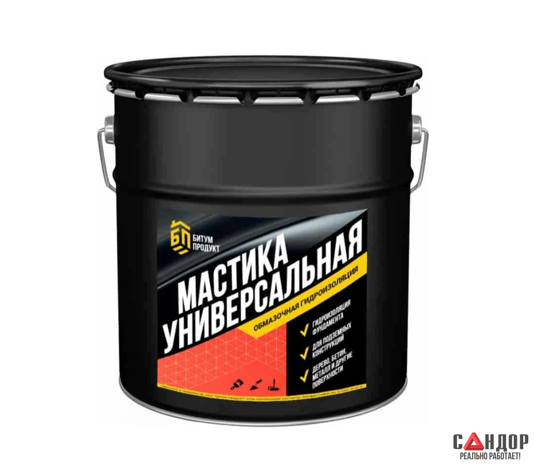 Битумная универсальная мастика 15 кг предназначена для гидроизоляции бетонных, металлических и деревянных конструкций.