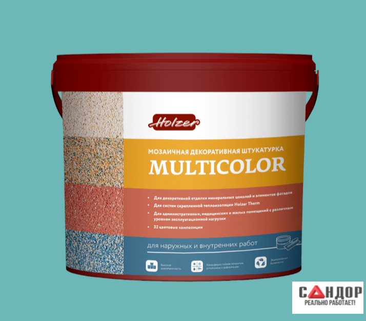 Holzer Multicolor F 1.2-2.0 мм — это готовая акриловая декоративная штукатурка с наполнителем из цветной каменной крошки более крупной фракции. Она создаёт максимально выраженную, грубую и рельефную фактуру с яркой игрой цвета и света. Это выбор для создания смелых, скульптурных, архитектурно-выразительных поверхностей.