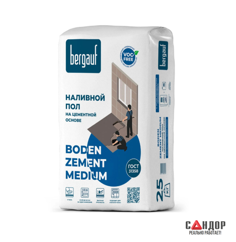 Наливной пол Bergauf Boden Street — это универсальный выравнивающий состав для наружных и внутренних работ. Подходит для помещений с любым уровнем влажности. В качестве основания может выступать бетон, черновая стяжка, подстилка из щебня, шлака, песка и даже грунт.
