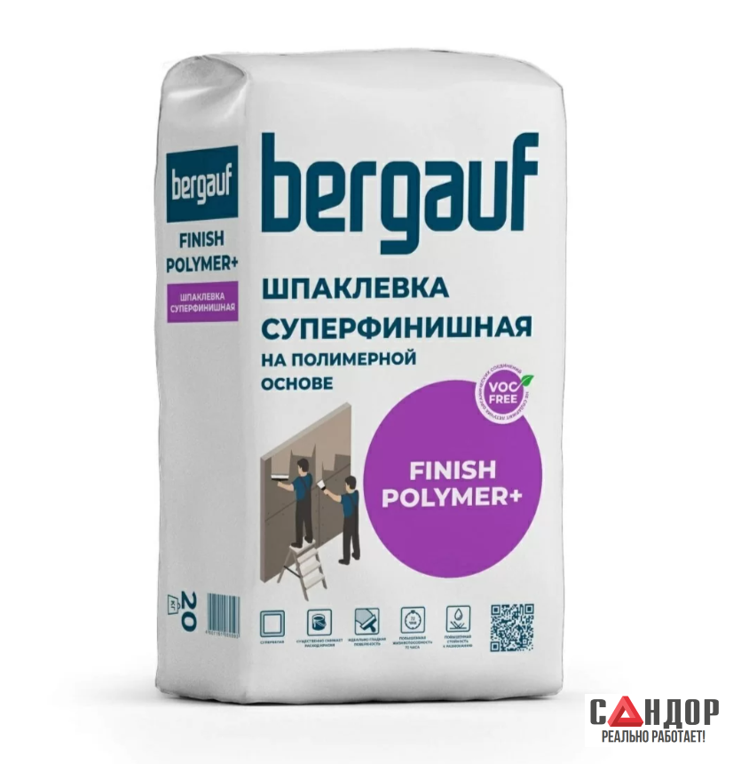 Шпаклёвка полимерная финишная Bergauf Finish Polymer предназначена для подготовки поверхностей для последующего оклеивания обоями, окраски или отделки плиткой.