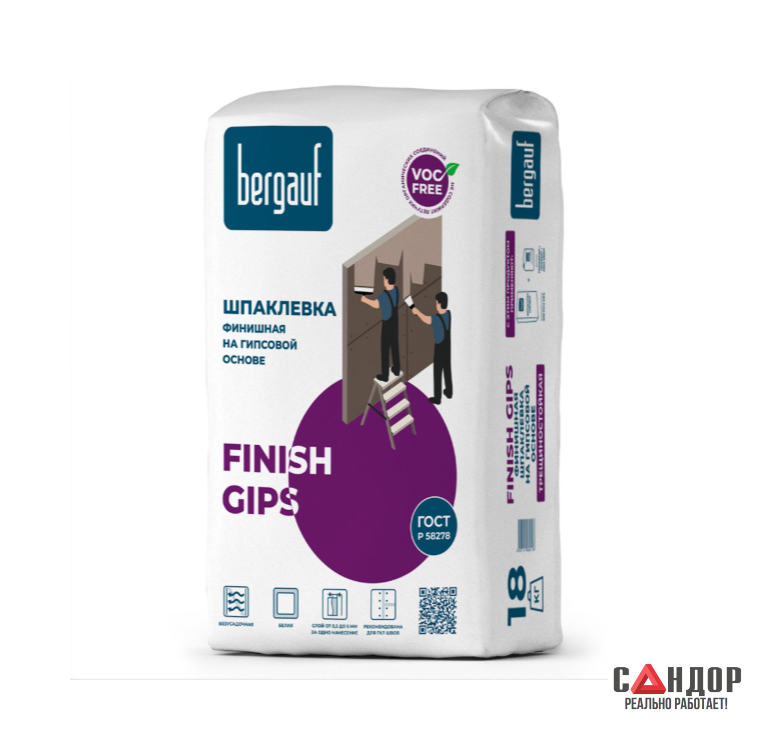 Bergauf Finish Gips — финишная шпатлёвка на гипсовой основе. Предназначена для финишного шпаклевания стен и потолков внутри помещений с нормальной влажностью.