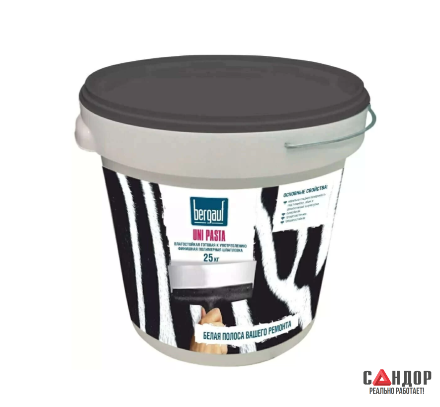 Финишная полимерная шпатлевка Bergauf Uni Pasta - влагостойкий полимерный финишный состав пастообразной консистенции для применения внутри помещений с нормальной и повышенной влажностью.