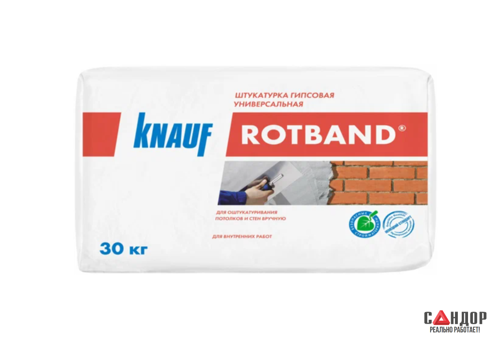 Штукатурка гипсовая Knauf Ротбанд с полимерными добавками, обеспечивающими повышенную адгезию и легкость выполнения работы.
