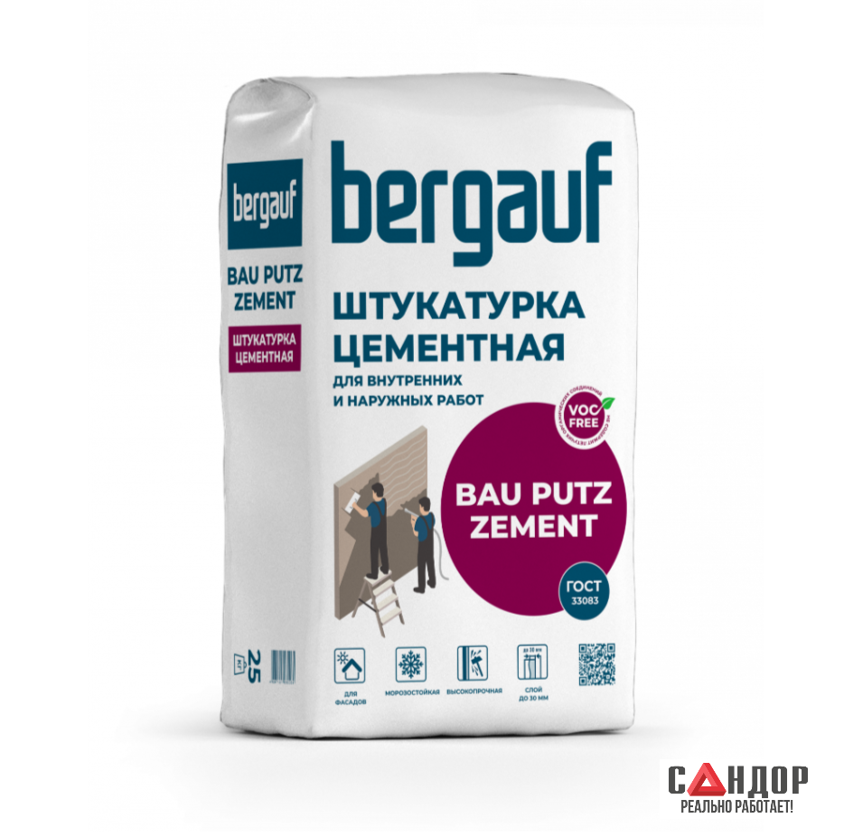 Bergauf Bau Putz Zement - цементная штукатурка для внутренних и наружных фасадных работ. Наносится на кирпичную кладку и любые виды бетона при нормальной и повышенной влажности.