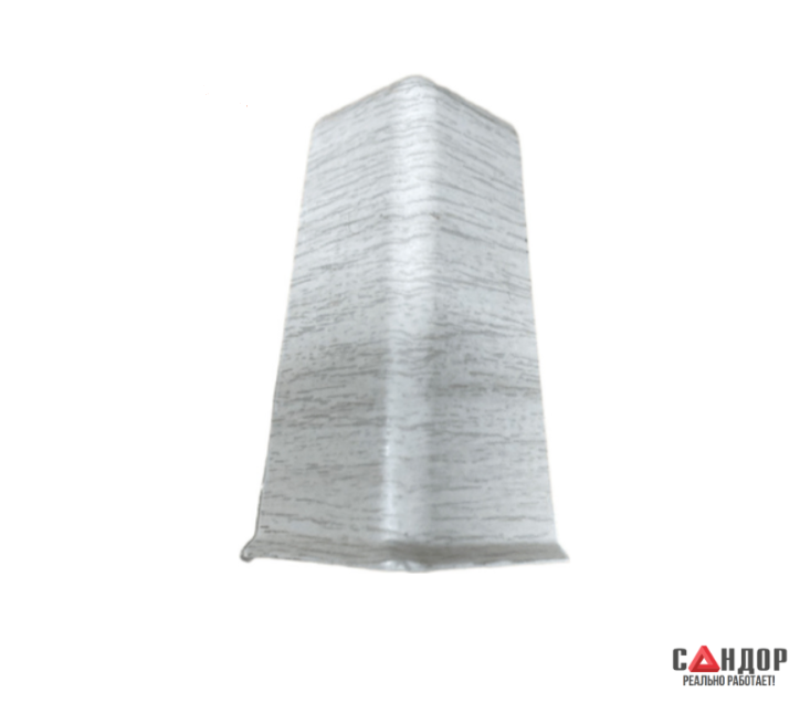 Угол наружный (внешний) для плинтуса Royce, 75 мм, «Дуб Снежный» - Это фасонный элемент (аксессуар), предназначенный для аккуратного оформления внешних (выступающих) углов стены. Он заменяет сложную ручную подрезку двух плинтусов под углом, упрощая и ускоряя монтаж, обеспечивая идеальный результат.