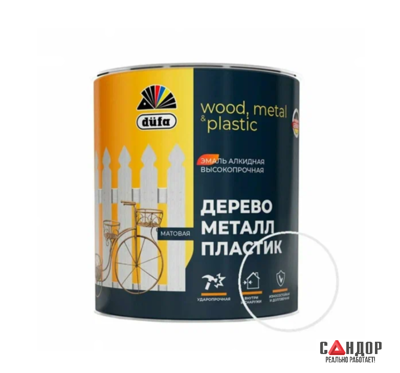 Эмаль Dufa для дерева, металла и пластика, алкидная база, RAL 7044, 0.75 л - это описание универсальной высококачественной эмали немецкого бренда Dufa, относящейся к серии Dufa Acryl или аналогичной линейки для внутренних работ.