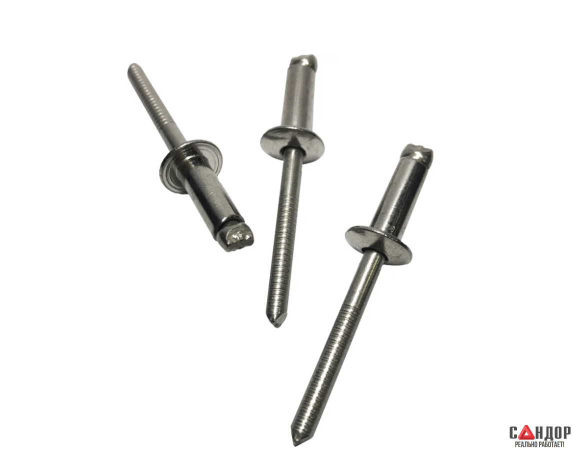 Вытяжная заклёпка KLAUE нержавеющие заклёпки диаметром 4х10 мм с насечками на стержне (маркировка RM). Насечки способствуют надёжному сцеплению стержня и губок заклёпочного инструмента во время монтажа, что облегчает отрыв и удаление остатков стержня после установки заклёпки.